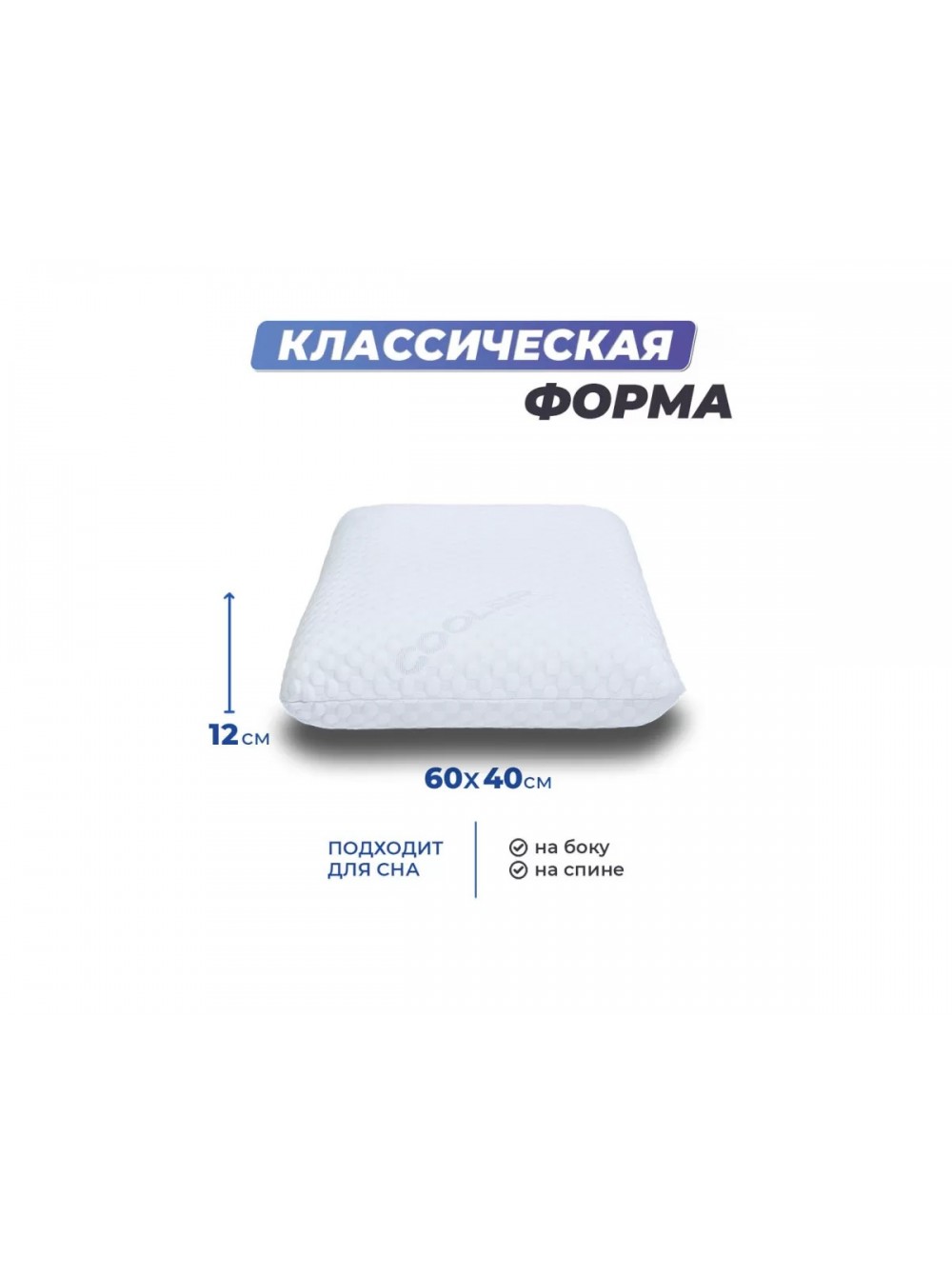 Подушка классической формы со съемным чехлом, изготовленным из инновационной охлаждающей ткани, температура которой ниже на 1-2 градуса окружающей среды.