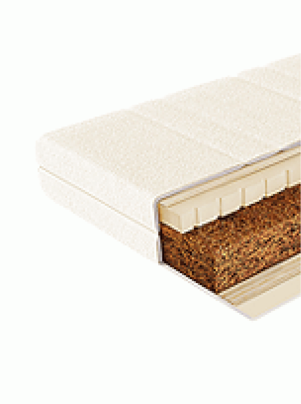 Ортопедический матрас Cocolatex, разный по жесткости с каждой стороны. Изготовлен полностью из натурального материала: кокосовая койра и латекс. Чехол съемный из хлопка.