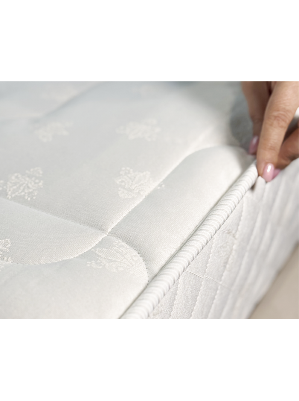 1. Жаккардовый чехол Чехол выполнен из прочной, износостойкой ткани жаккард люкс, простеганной на объемном холконе в сочетании с пеной Memori Foam. Благодаря чему в матрасе создается дополнительный анатомический слой, продлевается срок эксплуатации, изделие приобретает неповторимый внешний вид. 3D сетка по периметру матраса обеспечивает хорошую вентилируемость и сохраняет оптимальный микроклимат во время сна.